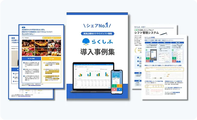 LINE対応クラウドシフト管理「らくしふ」の基本機能や料金、活用シーンをまとめた紹介資料。初めて検討される方に最適です。