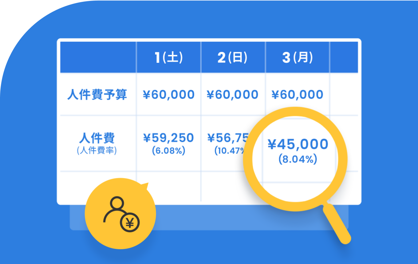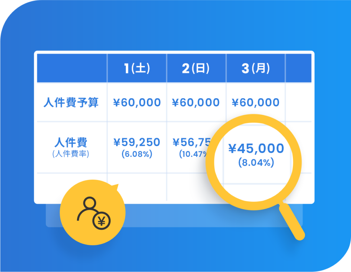 各店舗に応じた最適な人件費率や人時売上の目標値を設定でき、シフト作成時の判断材料として活用できます。
