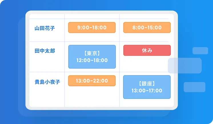 本部もマネージャーも、簡単に店舗のシフトを確認できます